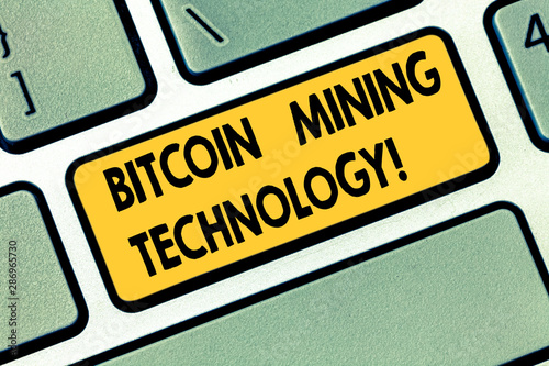 Text sign showing Bitcoin Mining Technology. Conceptual photo trades processing in the digital currency system Keyboard key Intention to create computer message pressing keypad idea