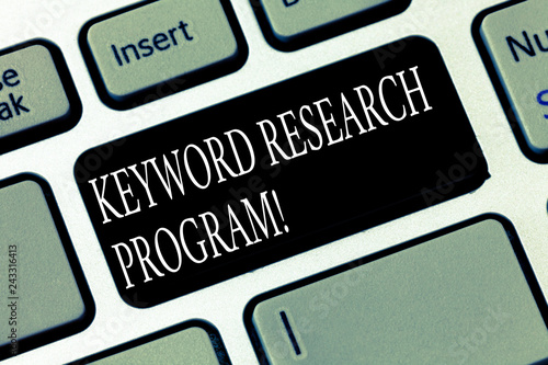 Text sign showing Keyword Research Program. Conceptual photo Fundamental practice in search engine optimization Keyboard key Intention to create computer message pressing keypad idea