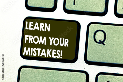 Text sign showing Learn From Your Mistakes. Conceptual photo Take experience and advice from fails errors Keyboard key Intention to create computer message pressing keypad idea