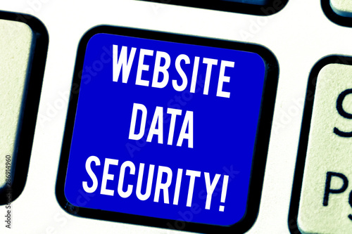 Text sign showing Website Data Security. Conceptual photo Protecting digital data from unauthorized users Keyboard key Intention to create computer message pressing keypad idea
