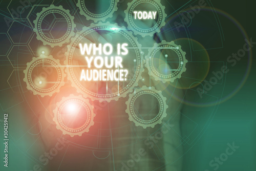 Text sign showing Who Is Your Audience Question. Business photo showcasing who is watching or listening to it Picture photo system network scheme modern technology smart device
