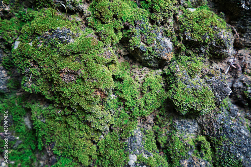 Textured rock background with green moss.