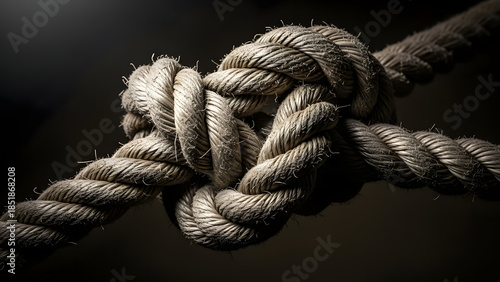 Textured Rope Knot Close-up Strength Connection Challenge Problem Solving Concept.