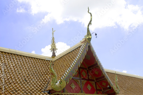 Thai temple ceramic roof with Thai art of Eaves of Thai-Buddhist