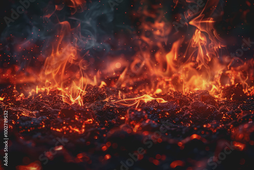The abstract background of red flames combined with black gives a hot feeling.
