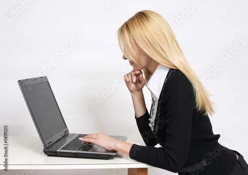 the beautiful blonde with notebook.