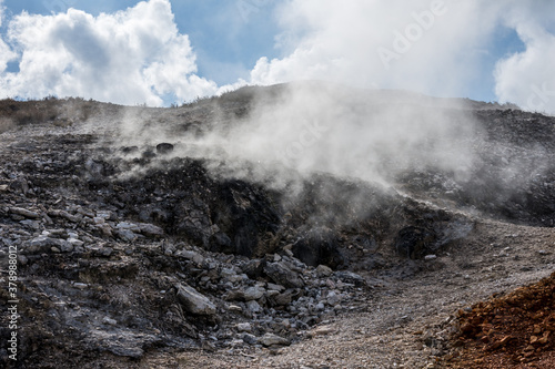 The "Biancane nature park" is an area near the town of Monterotondo Marittimo (Grosseto, Italy). There are several types of geothermal features such as showerheads, steam spills, and fumaroles.