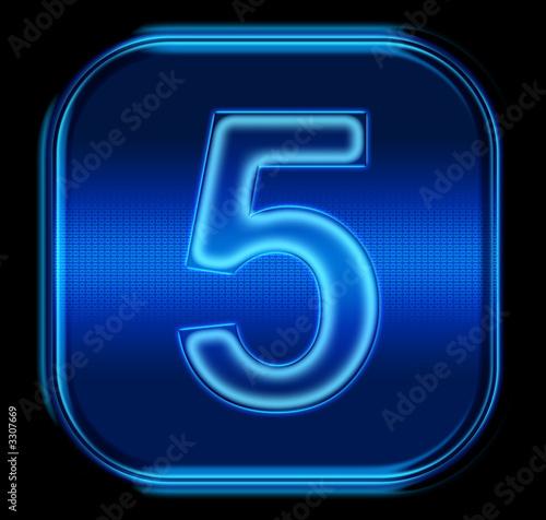 the button five blue neon. (with clipping path)