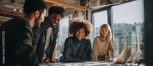 The cheerful team collaborating in a modern office space.
