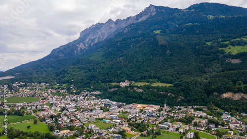 The City Vaduz in Liechtenstein on a cloudy day - Drone Perspective Landscape Photography