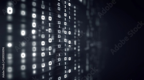 The concept of blockchain is represented through big data, binary code, and futuristic information technology, showcasing data flow and the transfer of large amounts of data within interconnected