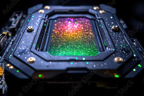 The Cutting-Edge Design of a Graphics Card Featuring Neon Digital Displays and Logo