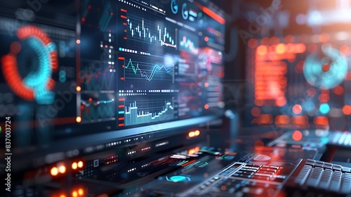 The digital realm with a real photo capturing a computer monitor displaying an abstract network monitoring dashboard. alive with real-time data analytics dynamic graphs and system health indicators.