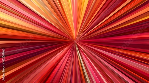 The image showcases a striking abstract design with lines of varying hues of red, orange, and yellow emanating from a central point, creating a vibrant burst effect.
