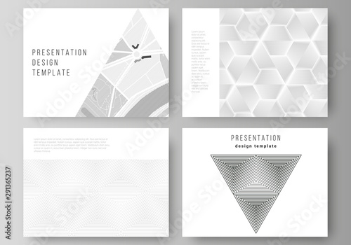 The minimalistic abstract vector illustration layout of the presentation slides design business templates. Abstract geometric triangle design background using different triangular style patterns.