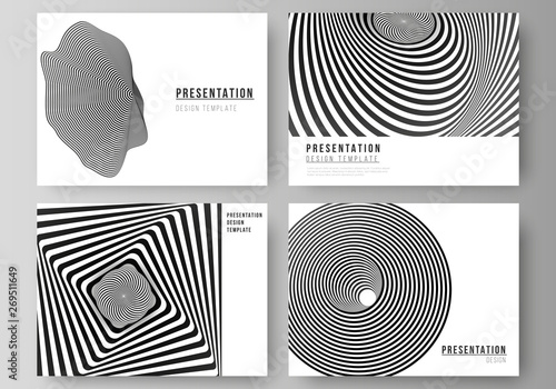 The minimalistic abstract vector layout of the presentation slides design business templates. Abstract 3D geometrical background with optical illusion black and white design pattern.