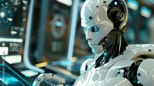 The robot, the android, is ready to perform work functions. AI Generated