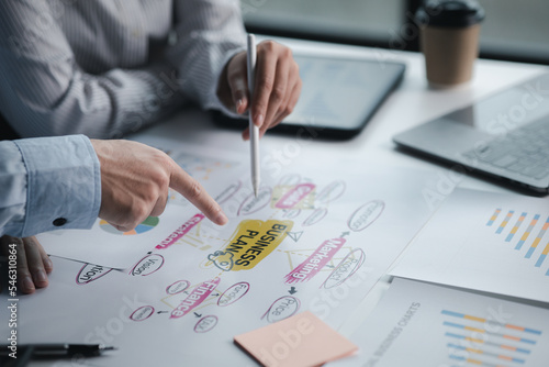 The sales department is having a monthly summary meeting to bring it to the department manager, they are verifying the correctness of the documents that are prepared before bringing in to the manager