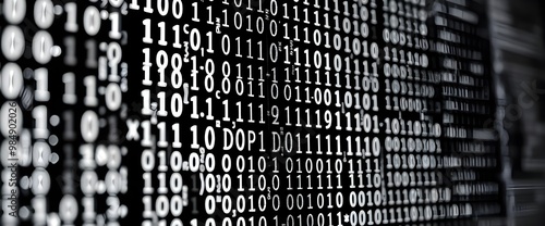 The screen’s black and white and the detailed textures. Screen displaying abstract Binary code is only small 0 and 1.