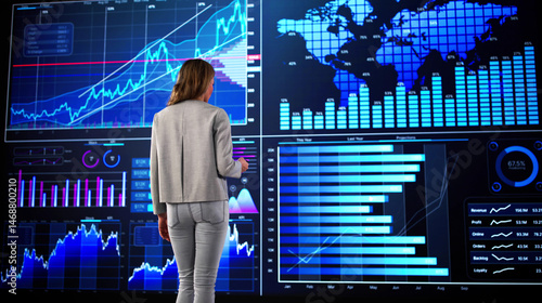 The Young Businesswoman Uses Big Data Artificial Intelligence Dashboard