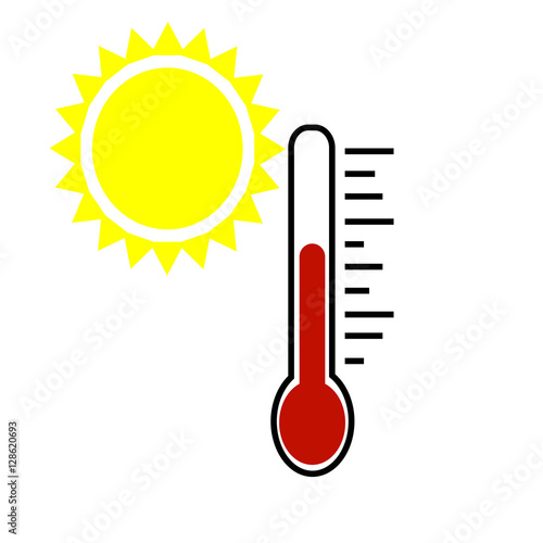 Thermometer with sun icon.