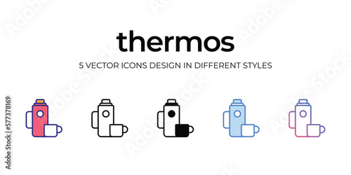 thermos Icon Design in Five style with Editable Stroke. Line, Solid, Flat Line, Duo Tone Color, and Color Gradient Line. Suitable for Web Page, Mobile App, UI, UX and GUI design.