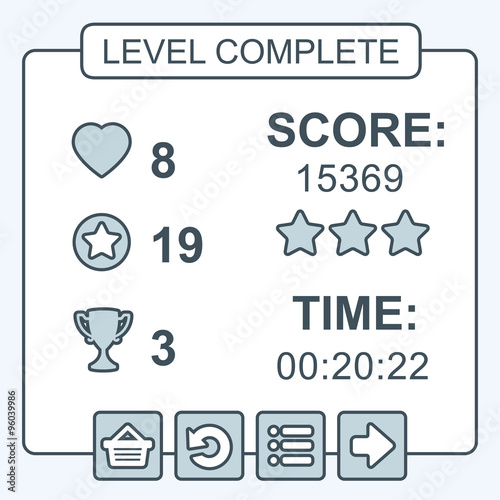 Thin line game level complete interface panels ui buttons