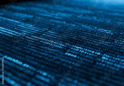 This close-up view of blue binary code, with its repeating pattern against a dark background, offers a visually engaging representation of computer programming and digital data