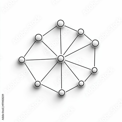 This illustration features a network diagram with several nodes connected by lines, representing relationships and data flow on a white backdrop