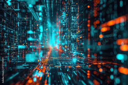This photo showcases an abstract depiction of a bustling cityscape, adorned with an abundance of colorful lights, An abstract representation of a cyberattack, AI Generated