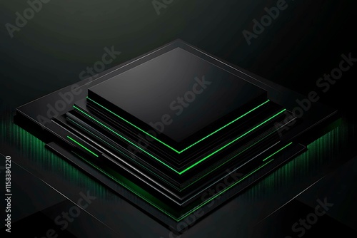 This vector illustration features a gradient green-black circuit board background, highlighted by an abstract technology pattern resembling interconnected circuitry.