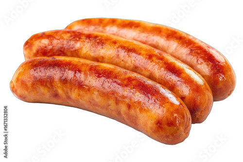 Three browned sausages, slightly overlapping