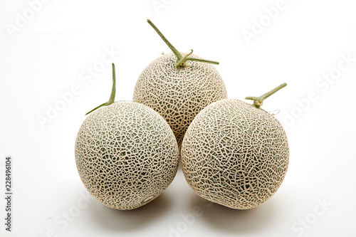 Three cantaloupe melon on white