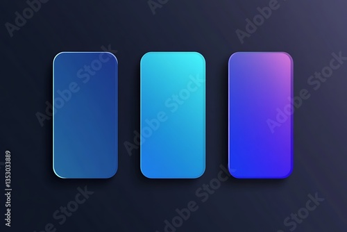Three Colorful Rectangular UI Elements on Dark Background Gradient Design Mockup