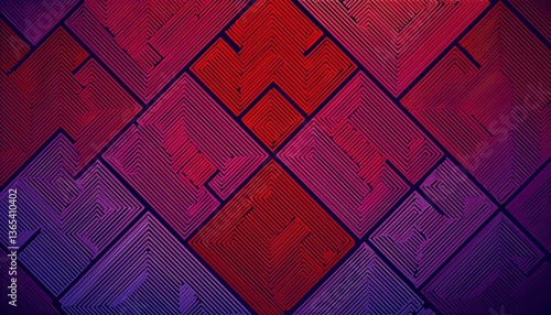 Three dimensional abstract purple and red geometric maze pattern design