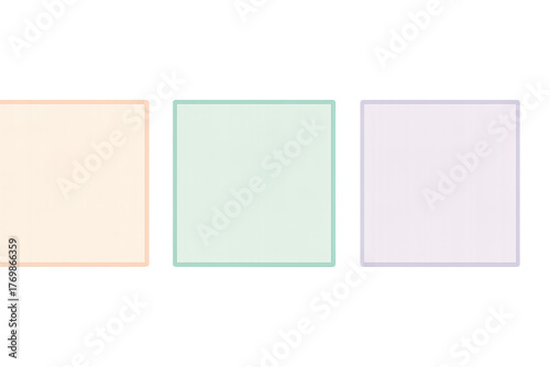 Three pastel colored blank squares with transparent background