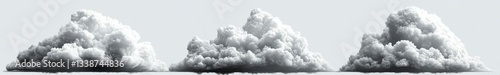 Three Realistic Fluffy Gray Clouds on White Background