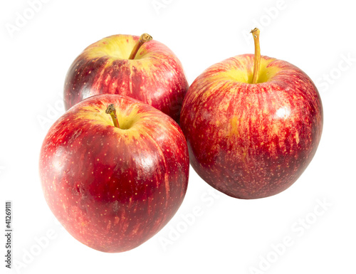 three red apples isolated on white background