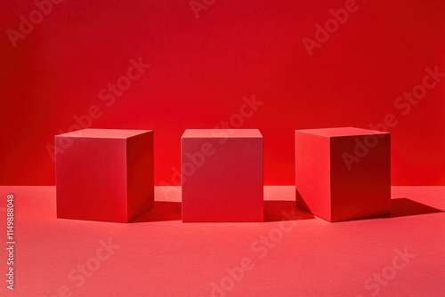 Three red cubes on red background.
