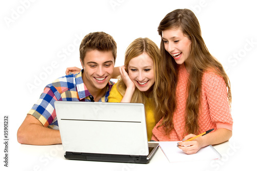 Three students with laptop