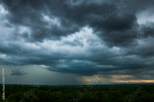 thunder storm sky Rain clouds .