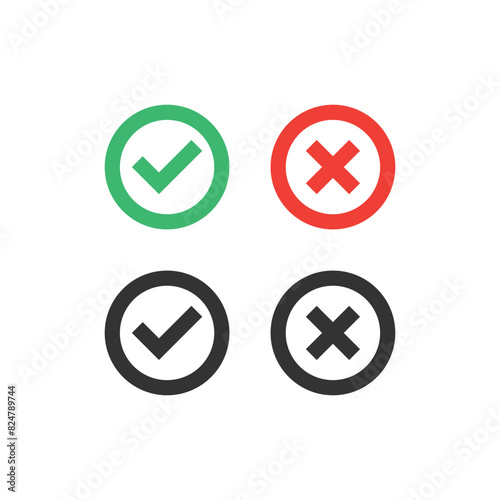 Tick, cross icon button set. Check mark icons. Vector illustration