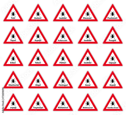 tick warning label in 25 languages