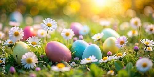 Tilt-Shift Easter Eggs: Pastel Daisies & Spring Flowers - Copy Space
