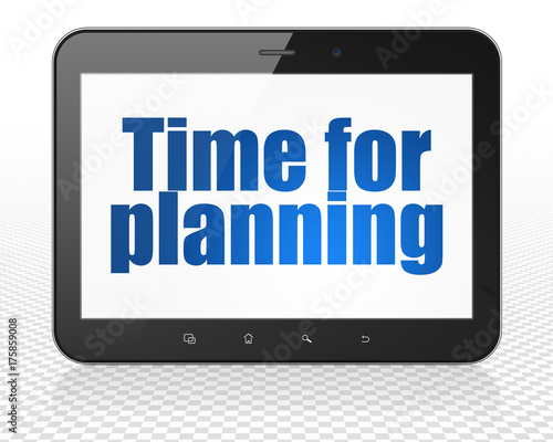 Timeline concept: Tablet Pc Computer with Time for Planning on display