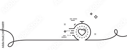 Timer line icon. Continuous one line with curl. Time management sign. Stopwatch with heart symbol. Timer single outline ribbon. Loop curve pattern. Vector