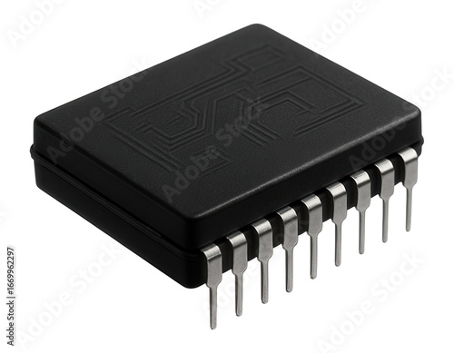 Tiny black microchip with a single row of pins