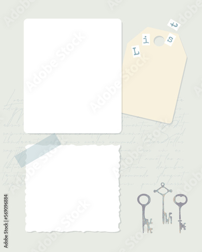 To do list template , scrapbooking, collage vintage, template blank, reminders, notes. Old key.