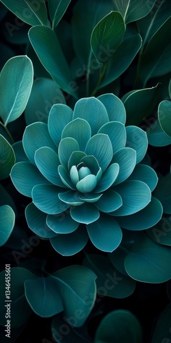 Top View Close Up, Teal Green Leaves Of Succulent, Abstract Floral Pattern Nature Background.