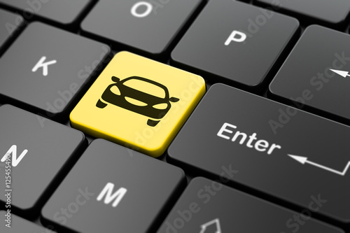 Tourism concept: Car on computer keyboard background